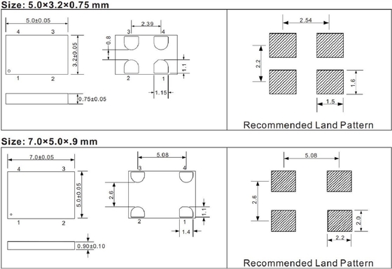 স্ট্যান্ডার্ড ৪ পিন প্যাকেজঃ ২.৫ x ২।0, ৩.২ x ২5, ৫.০ x ৩2, 7.0 x 5.0 মিমি x মিমি